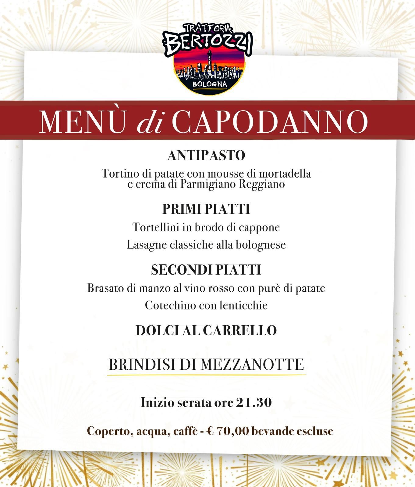 La Trattoria Bertozzi si occupa di proporre ai clienti solo il meglio della tradizione culinaria bolognese. Conosciuta fin dal Medioevo come "Bologna la grassa", la città ha storicamente sviluppato un grande amore per il cibo e i vini di alta qualità, tanto da essere la patria di alcune delle ricette italiane più conosciute e riprodotte al mondo, come la lasagna, la pasta al ragù e i tortellini.